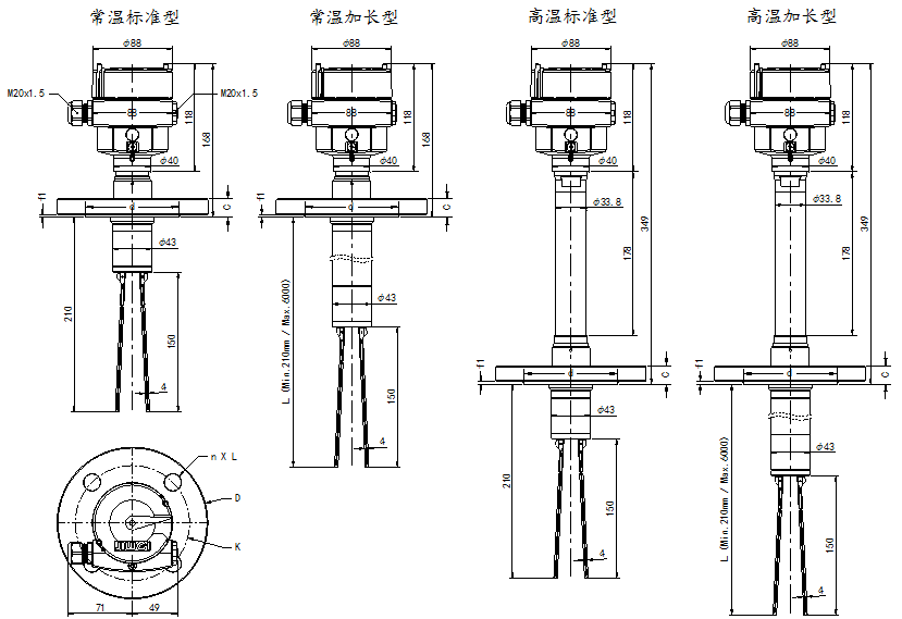 6.安裝方式:音叉料位開關(guān)一般采頂裝和側(cè)裝兩種安裝方式,如果現(xiàn)場(chǎng)工況要求頂裝,那么所采購(gòu)的音叉料位開關(guān)的叉體一般要長(zhǎng)些。如果是側(cè)裝的安裝方式,則不需要對(duì)叉體進(jìn)行加長(zhǎng)。